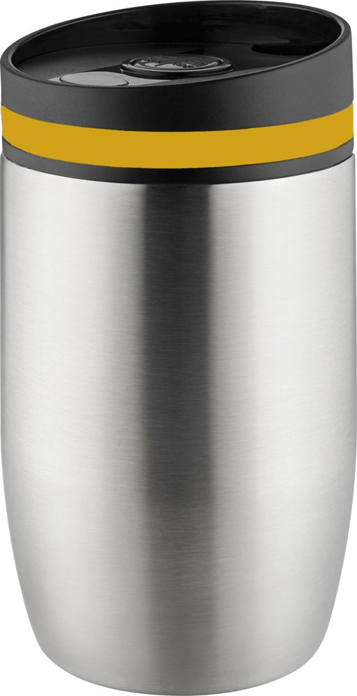 Metmaxx® Thermobecher "CremaOfficinaBudget“ silber/Ring gelb