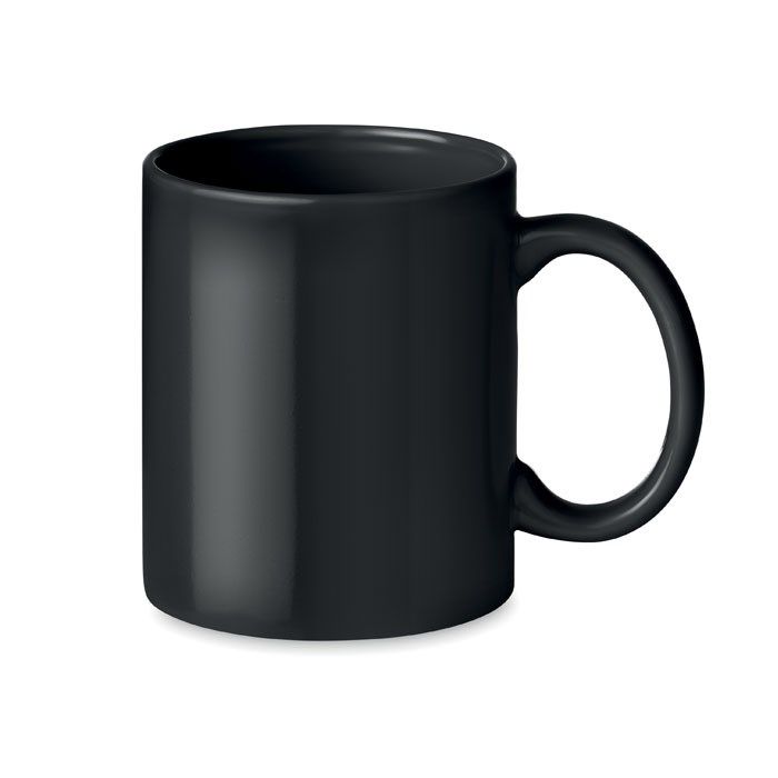Farbiger Kaffeebecher aus Keramik. Füllmenge: 300ml. Nur Keramik- Transferdruck ist spülmaschinengeeignet. Verpackt in einem Karton.