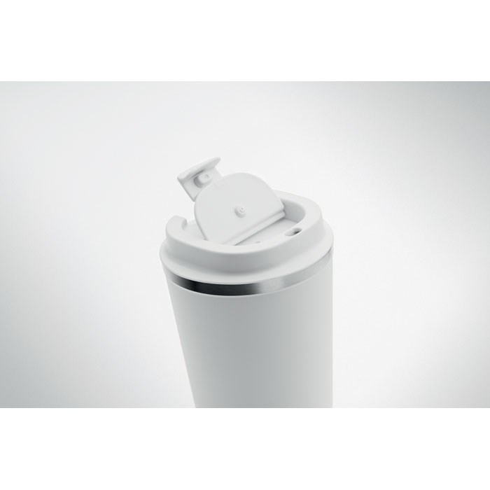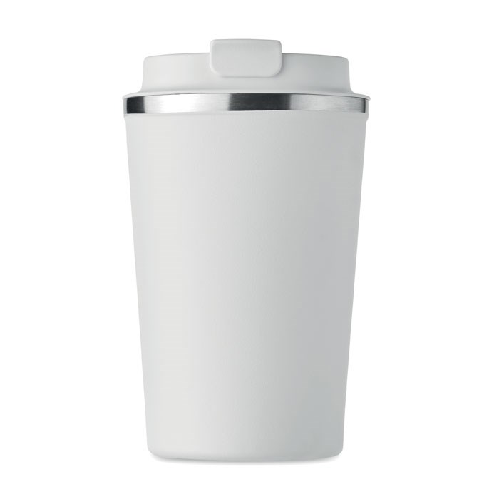 Doppelwandiger Becher aus Edelstahl mit PP-Deckel. Füllmenge: 350 ml.