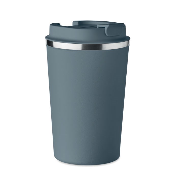 Doppelwandiger Becher aus Edelstahl mit PP-Deckel. Füllmenge: 350 ml.