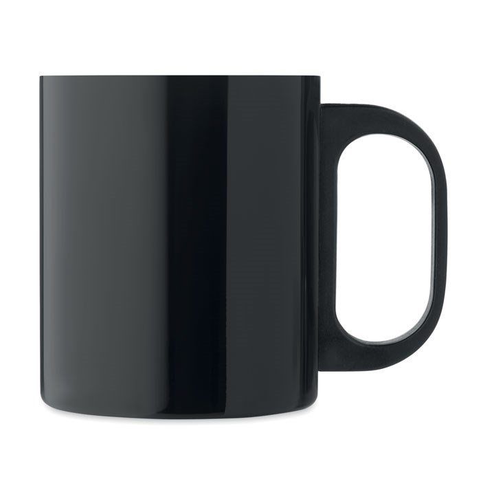 Doppelwandiger Becher aus Edelstahl mit PP-Griff. Füllmenge: 300 ml.