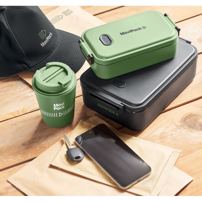 Doppelwandiger Trinkbecher mit Trinkdeckel aus PP. Füllmenge: 300 ml.