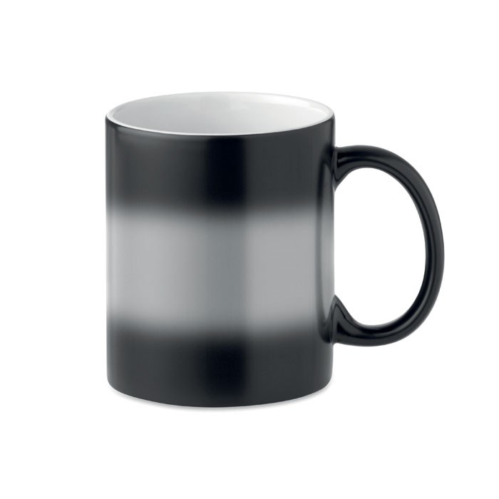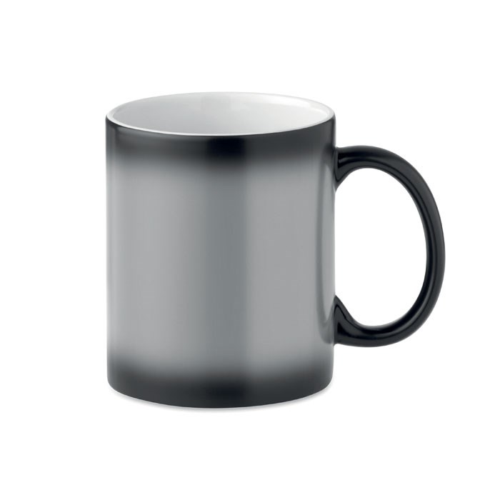 Kaffeebecher aus Keramik. Spezielle Beschichtung für Sublimationsdruck. Die Farbe des Bechers wechselt in Ihren Aufdruck, wenn (mind.) 50°C heiße Flüssigkeit in den Becher gefüllt wird. Füllmenge: 300 ml. Nicht spülmaschinengeeignet. Verpackt in einem weißen Karton.
