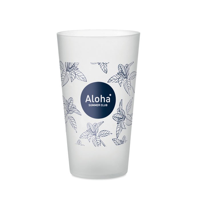 Wiederverwendbarer PP-Becher mit gefrosteter Oberfläche. Ideal für Festivals. Füllmenge: 500 ml.