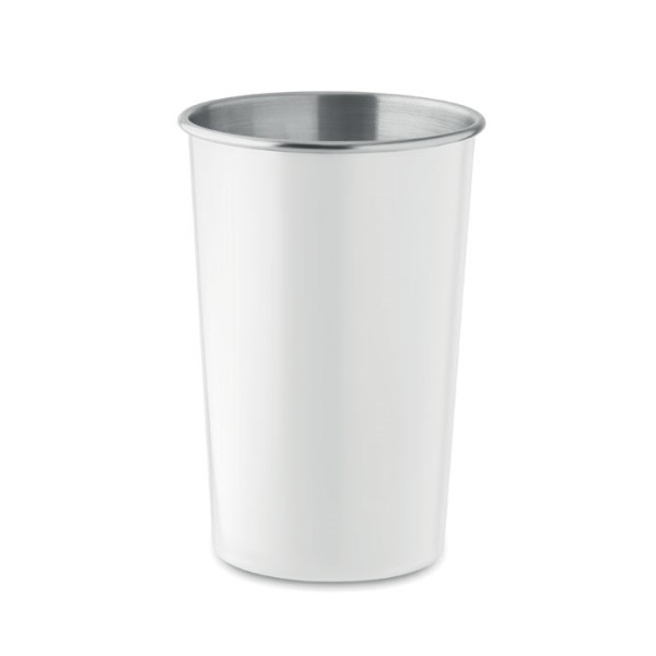 Wiederverwendbarer Becher aus recyceltem Edelstahl (90 % recycelter Edelstahl und 10 % Edelstahl). Füllmenge: 350 ml. Da der einwandige Becher die Hitze nach außen leiten kann, kann der Artikel heiß werden.