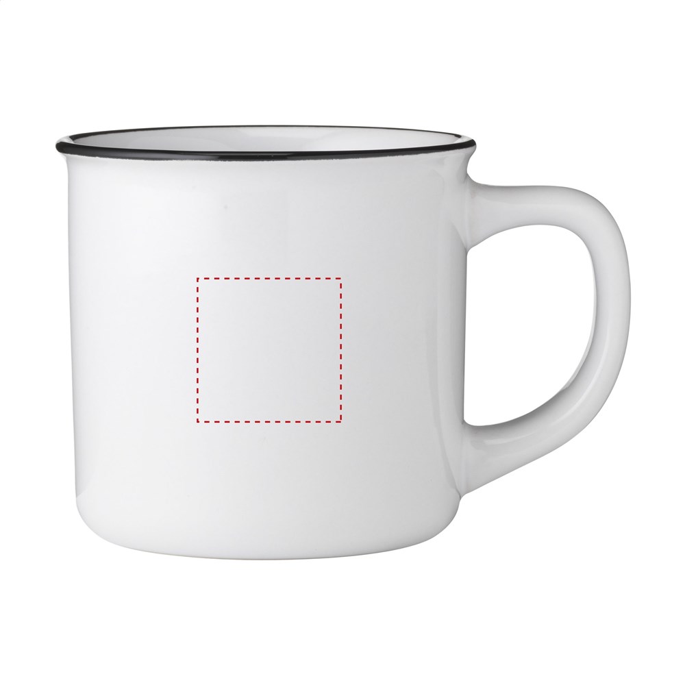 Hochwertiger Keramikbecher im beliebten Retrostil. Fassungsvermögen 320 ml. Spülmaschinenfest. Der Druck ist spülmaschinengeprüft und zertifiziert: EN 12875-2.