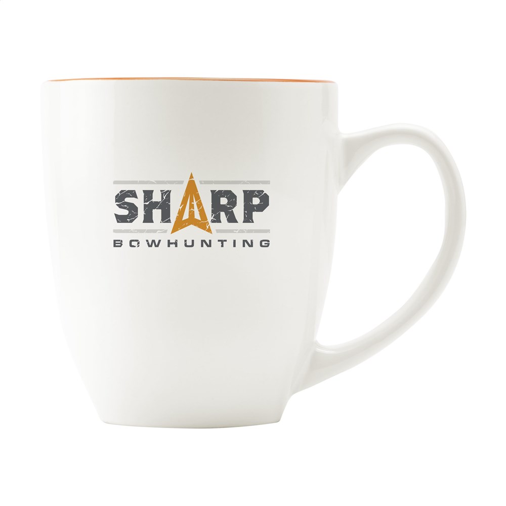 Extragroßer Becher aus hochwertiger Keramik. Komplett in weiß oder mit auffallender, farbiger Innenseite. Fassungsvermögen 450 ml. Spülmaschinengeeignet. Der Aufdruck ist spülmaschinengeprüft und nach EN 12875-2 zertifiziert.