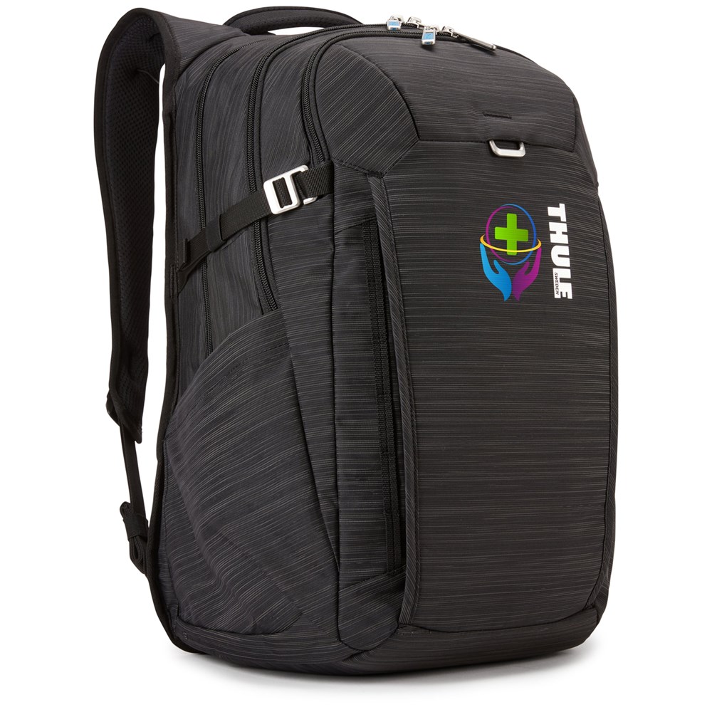 Der Thule Construct Rucksack 28L ist ein zeitgemäßer und praktischer Rucksack mit viel Organisation und Stauraum für Arbeit oder Reisen. Schützen Sie einen Laptop bis zu 15,6 Zoll und ein Tablet bis zu 10,5 Zoll in dem dafür vorgesehenen, gepolsterten Fach mit einer weichen Tasche. Bewahren Sie kleine Gegenstände oder ein Laptopkabel in der Seitentasche mit Reißverschluss auf und stecken Sie eine Wasserflasche in die erweiterbare offene Seitentasche. Es wird auch mit einem hochauflösenden Thermodruck Ihres Logos personalisiert.