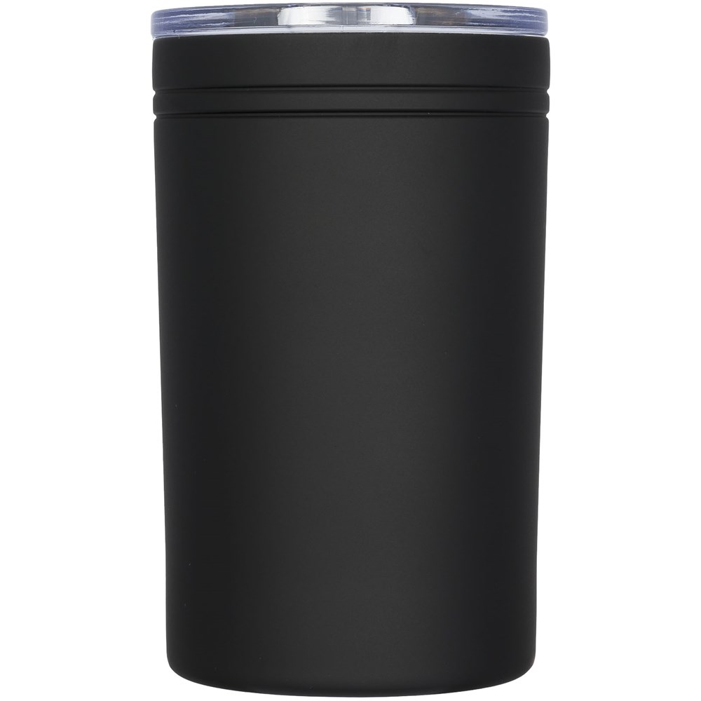 Doppelwandige Konstruktion, vakuumisoliert. Durchsichtiger Stülpdeckel mit Schiebeverschluss. Funktioniert als Becher oder Getränkeisolator. Fassungsvermögen 330 ml.