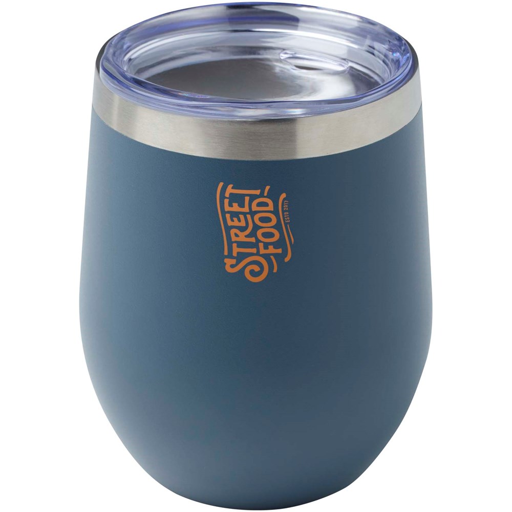 Der Corzo besteht aus RCS-zertifiziertem Edelstahl und verfügt über eine doppelwandige Vakuumkonstruktion mit Kupferisolierung, die Getränke 6 Stunden lang heiß oder 24 Stunden lang kalt hält. Die Konstruktion verhindert Kondensation an der Außenseite des Bechers. Einfaches trinken, Deckel zum Andrücken. Mit Sprüh-Pulverbeschichtung auf der Außenseite. Eine breite Öffnung zum bequemen Befüllen und Ausgießen. Das Fassungsvermögen beträgt 350 ml. Verpackt in einer Geschenkbox aus recyceltem Karton.
