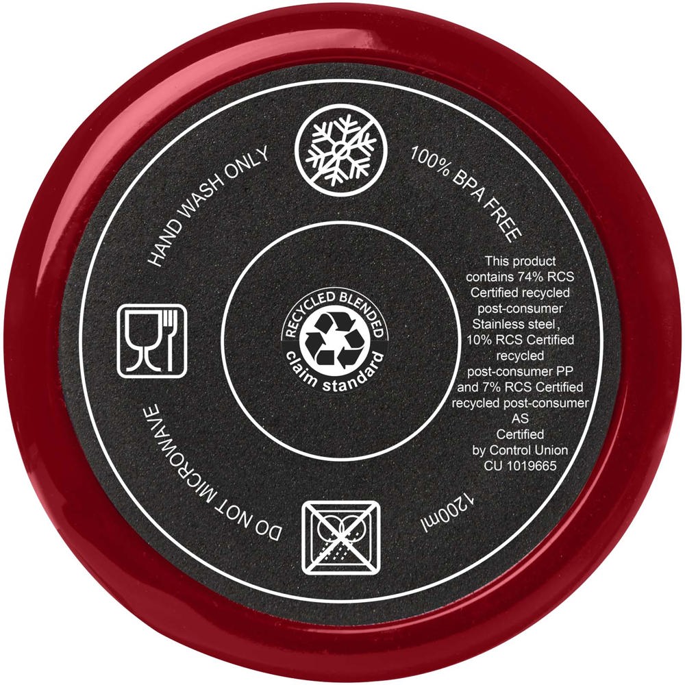 Der Melbourne Becher hat eine doppelwandige Luftisolierung und hält Getränke bis zu 2 Stunden heiß und bis zu 4 Stunden kalt. Die Innenwand des Bechers besteht aus recyceltem Kunststoff, die Außenwand aus RCS-zertifiziertem, recyceltem Edelstahl. Der Becher hat ein Fassungsvermögen von 1.200 ml, damit Sie den ganzen Tag lang stilvoll mit Flüssigkeit versorgt sind. Mit spritzwassergeschütztem Druckdeckel mit zwei Öffnungen und Drehverschluss. Mit lebensmittelechtem und recyceltem Trinkhalm. Nur von Hand reinigen.