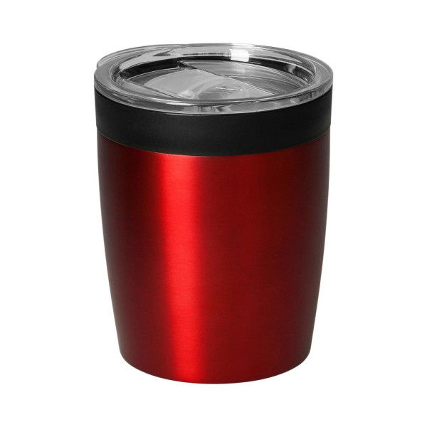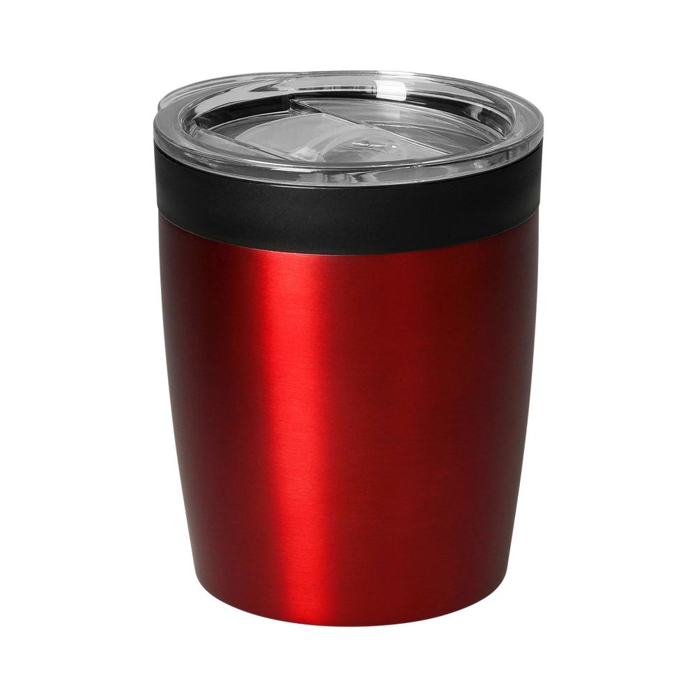 Der passt immer. Doppelwandiger Kaffeebecher, der unter fast jede Kaffeemaschine und in fast jeden gängigen Getränkehalter im PKW passt. Außen aus Edelstahl und innen aus Kunststoff hält er durch die integrierte Silikondichtung im Deckel das Getränk dort wo es bleiben soll. Die Nase am Deckel ermöglicht ein einfaches Öffnen. Füllmenge: 0,28 Liter.