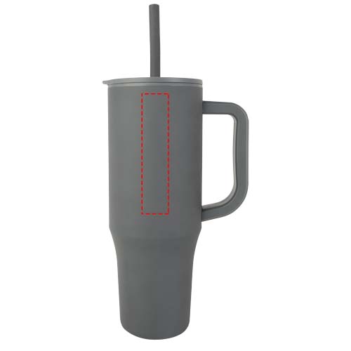 Becher mit einer robusten Außenwand aus RCS-zertifiziertem recyceltem Edelstahl und einer Innenwand aus Kunststoff. Hält Ihr Getränk bis zu 12 Stunden warm oder kalt. Er verfügt über einen integrierten Trinkhalm aus lebensmittelechtem Silikon und einen spritzwassergeschützten Druckdeckel für ein problemloses Trinken. Der Becher eignet sich auch für warme Getränke, es wird jedoch davon abgeraten, diese mit einem Trinkhalm zu trinken. Um das Getränk abkühlen zu lassen, entfernen Sie den Deckel vor dem Trinken. Fassungsvermögen: 900 ml. Nur von Hand reinigen.