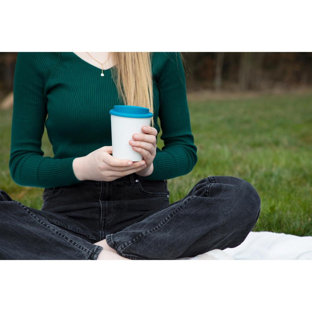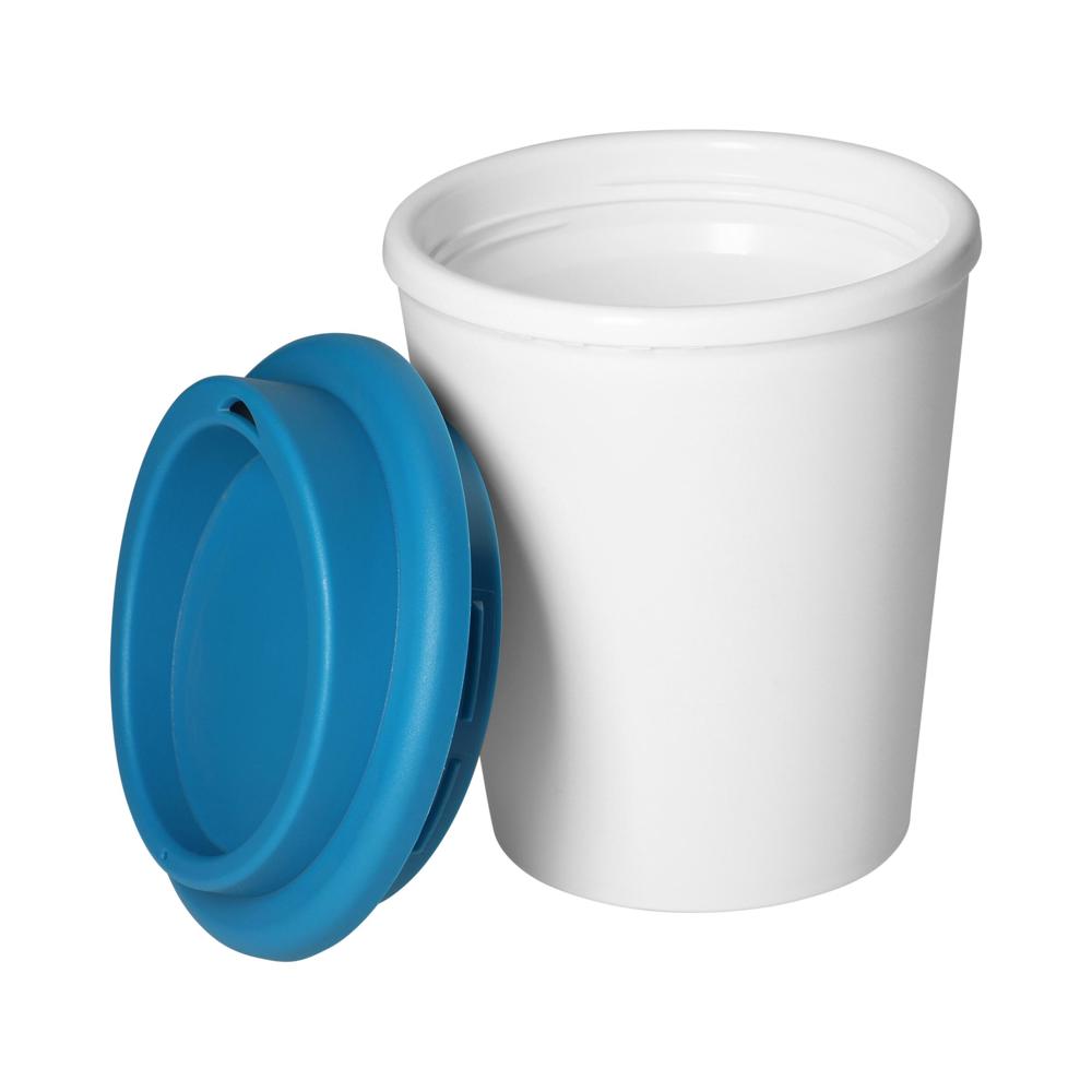 Smarter To-Go-Becher aus doppelwandigem Kunststoff. Der Außenbecher wird mit recyceltem Polypropylen, welches bei der elastocare Maskenproduktion übrig bleibt, hergestellt. Der Vliesstoff, der beim Ausstanzen der Masken nicht verwendet wird, wird hierbei nicht entsorgt, sondern gesammelt, recycelt und dem Produktionskreislauf wieder zugeführt. Passt in alle gängigen Getränkehalter in PKW. Standardausführung mit weißem Becher und Deckel in der Farbe "ocean". Andere Farbvarianten auf Anfrage möglich. Füllmenge: 0,25 Liter.