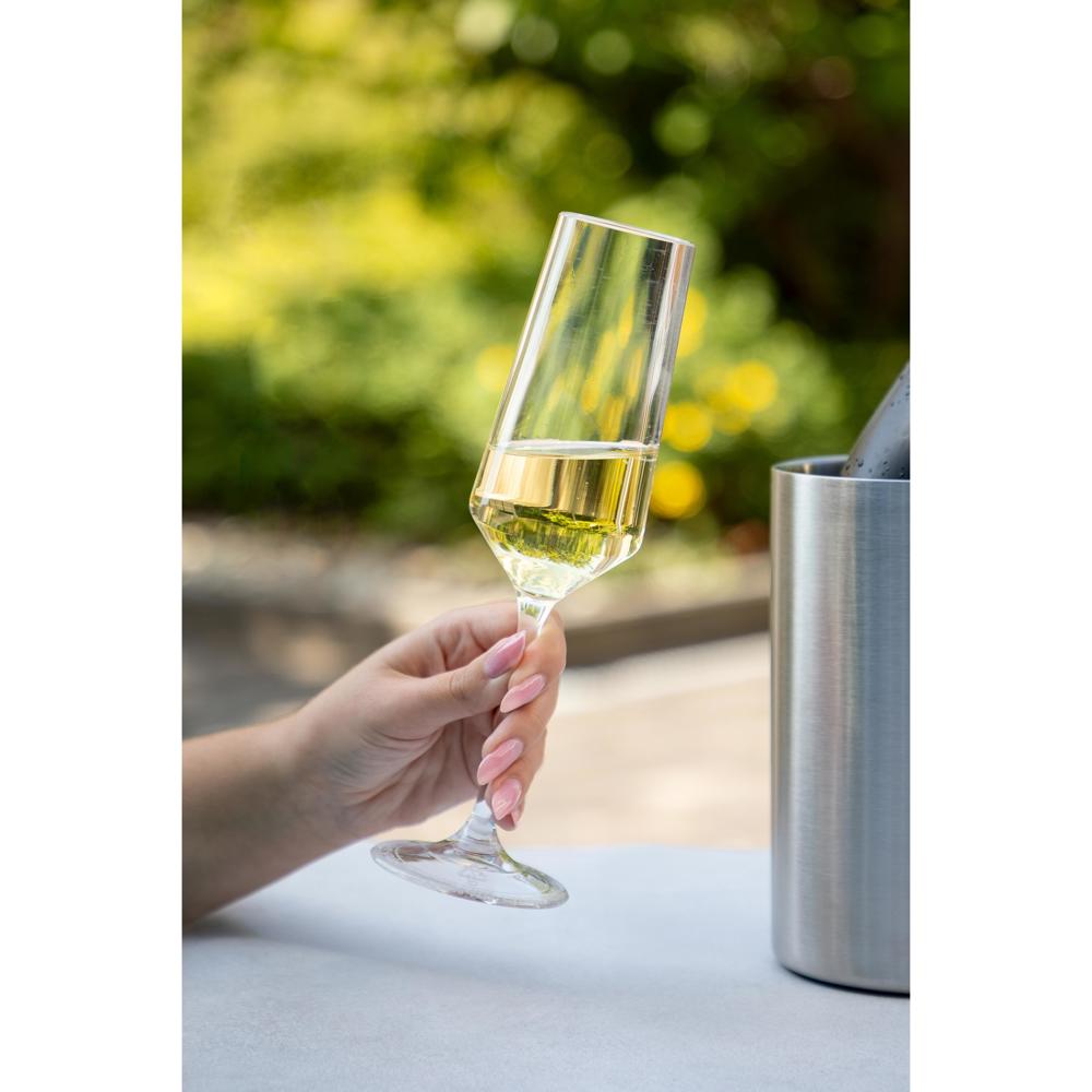 Das Sektglas "Vista" besticht durch sein stilvolles Design und das bruchsichere PMMA-Material. Es ist ideal für feierliche Anlässe und verleiht jedem Event einen eleganten Touch. Ob drinnen oder draußen – dieses Glas bietet die perfekte Kombination aus Ästhetik und Funktionalität, ohne auf Langlebigkeit zu verzichten. Spülmaschinengeeignet bis 50°C. Füllvolumen: ca. 240 ml