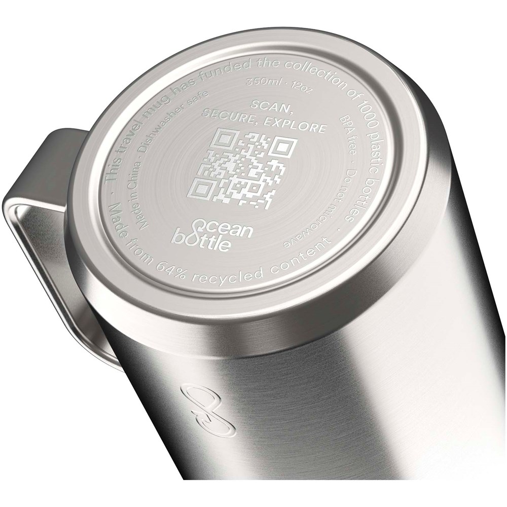 Der Ocean Bottle 350 ml Reisebecher ist doppelwandig isoliert und hält Getränke bis zu vier Stunden heiß und bis zu zehn Stunden kalt. Jeder Reisebecher ist CO₂-neutral und finanziert die Sammlung von 1.000 Plastikflaschen, um die Lebensbedingungen in Küstengemeinden zu verbessern. Der Becher besteht zu 90 % aus recyceltem Edelstahl und anderen recycelten Materialien. Verpackt in einer Geschenkbox aus verantwortungsvoll hergestellten Recyclingkarton.