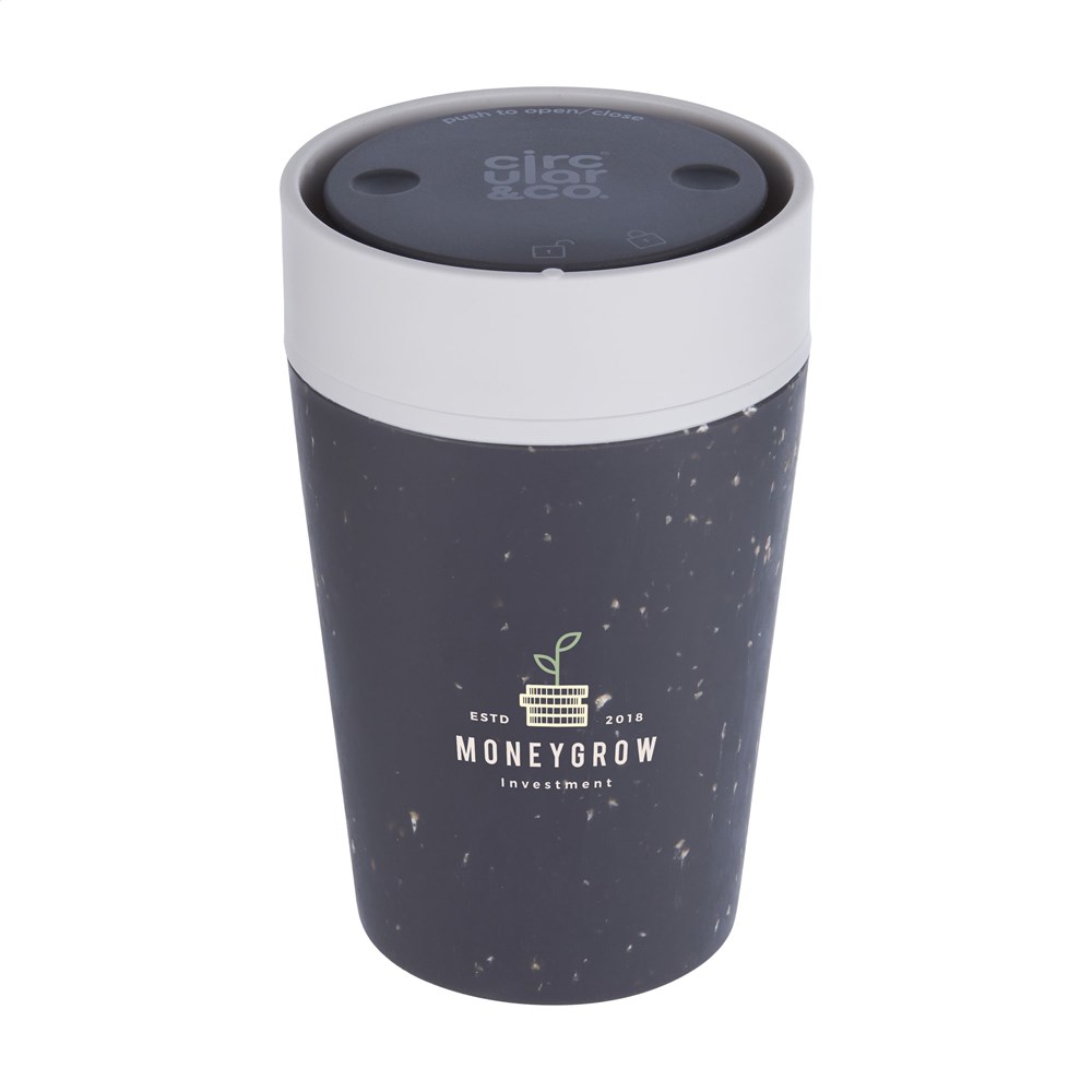 Doppelwandiger, wiederverwendbarer Kaffeebecher-to-go mit Deckel von Circular&Co. Die äußere Isolierschicht dieses Bechers wird aus gebrauchten, recycelten Einweg-Kaffeebechern aus Papier hergestellt. Mit Innenwand und Deckel aus PP. 100% auslaufsicher. Die isolierende Wirkung hält Ihr Heißgetränk länger warm und Ihr Kaltgetränk länger kühl. Der Deckel ist mit der patentierten 360-Grad-Technologie ausgestattet, die es Ihnen ermöglicht, aus jedem Winkel zu nippen. Der Kaffeebecher lässt sich mit einer Hand und einem Klick öffnen und schließen. Ideal für unterwegs. Spülmaschinengeeignet. Um den Aufdruck zu erhalten, wird Waschen von Hand empfohlen. Fassungsvermögen: 227 ml. EXTRA INFO: Bei einer Mindestbestellmenge von 5.000 Stück ist der Deckel dieses Produkts in jeder PMS-Farbe erhältlich. Auf diese Weise schaffen Sie eine perfekte Übereinstimmung zwischen Produkt und Aufdruck. Verpackt pro Stück.