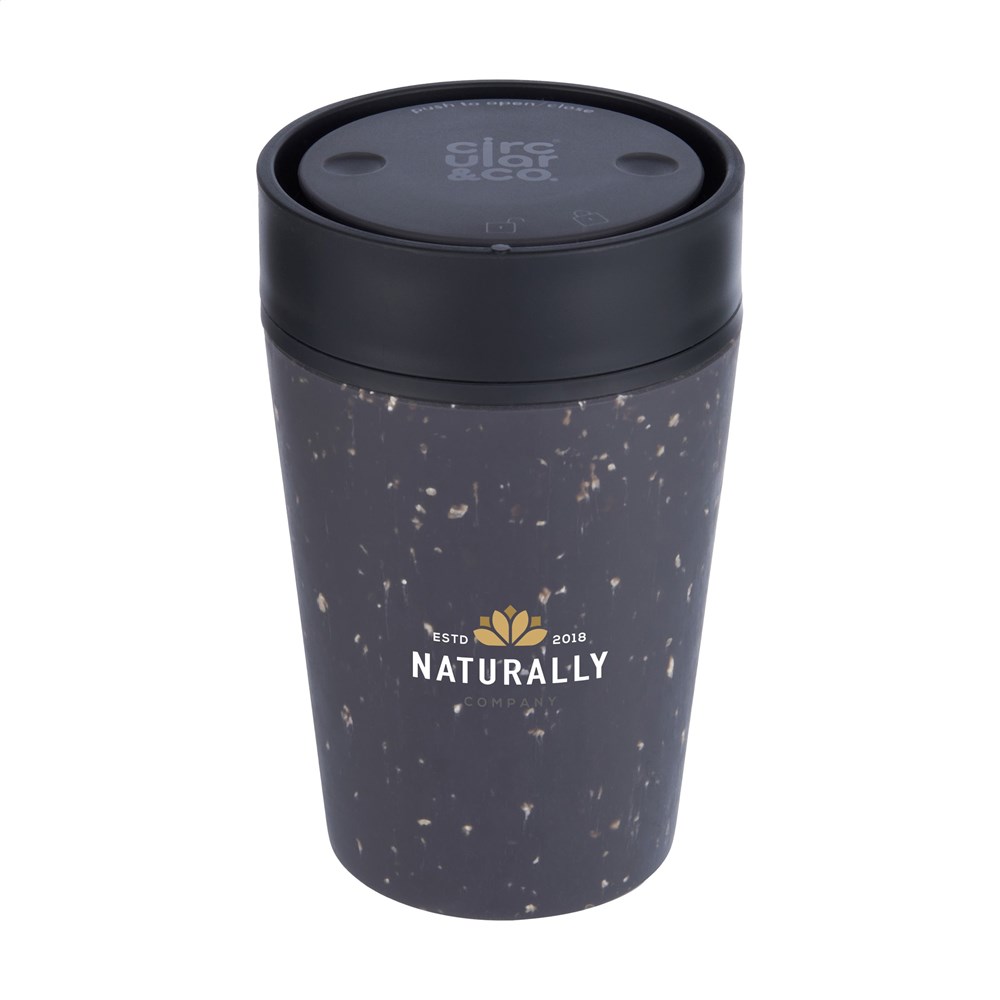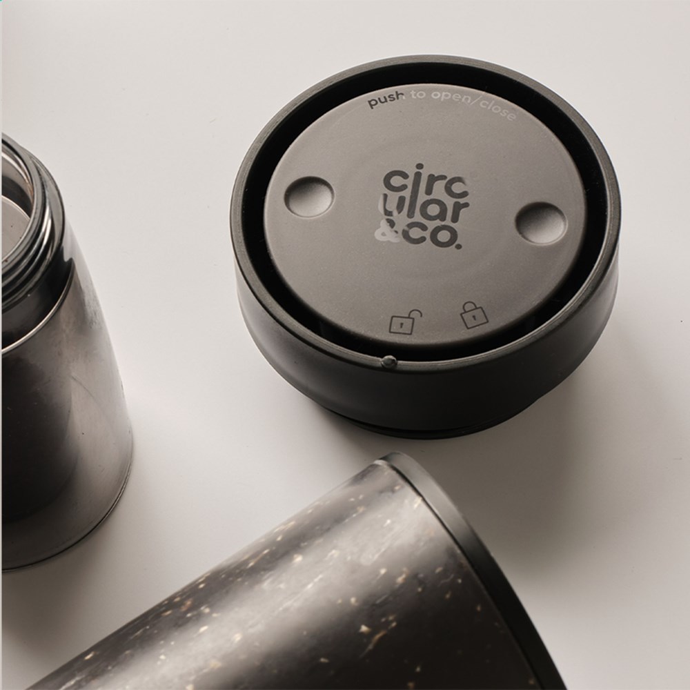 Doppelwandiger, wiederverwendbarer Kaffeebecher-to-go mit Deckel von Circular&Co. Die äußere Isolierschicht dieses Bechers wird aus gebrauchten, recycelten Einweg-Kaffeebechern aus Papier hergestellt. Mit Innenwand und Deckel aus PP. 100% auslaufsicher. Die isolierende Wirkung hält Ihr Heißgetränk länger warm und Ihr Kaltgetränk länger kühl. Der Deckel ist mit der patentierten 360-Grad-Technologie ausgestattet, die es Ihnen ermöglicht, aus jedem Winkel zu nippen. Der Kaffeebecher lässt sich mit einer Hand und einem Klick öffnen und schließen. Ideal für unterwegs. Spülmaschinengeeignet. Um den Aufdruck zu erhalten, wird Waschen von Hand empfohlen. Fassungsvermögen: 227 ml. EXTRA INFO: Bei einer Mindestbestellmenge von 5.000 Stück ist der Deckel dieses Produkts in jeder PMS-Farbe erhältlich. Auf diese Weise schaffen Sie eine perfekte Übereinstimmung zwischen Produkt und Aufdruck. Verpackt pro Stück.