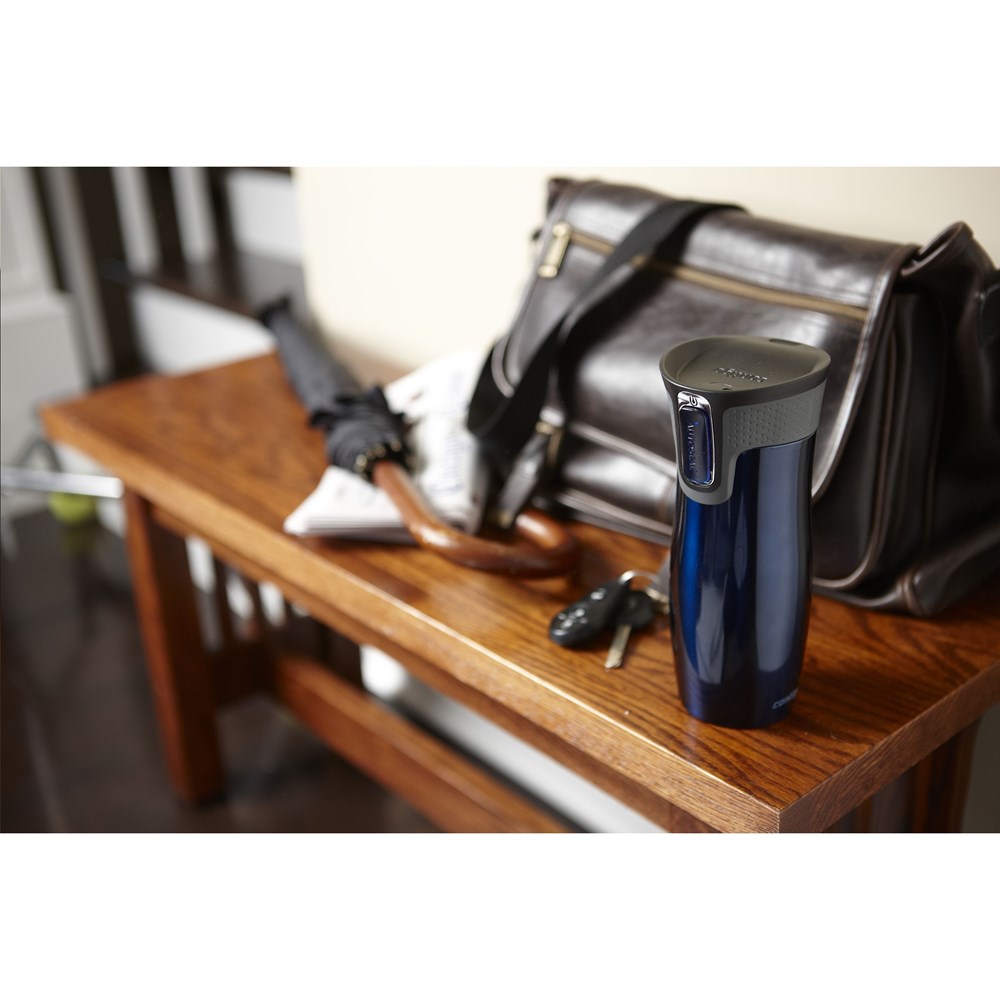 Doppelwandiger vakuumisolierte Thermobecher mit Innenwand aus rostfreiem Edelstahl. Ausgestattet mit AUTOSEAL™-Technologie (100% sicher vor Verschütten oder Auslaufen) und extra Sicherheitsverschluss. Die Trinköffnung schließt sich automatisch nach jedem Schluck. Die THERMALOCK™-Technologie hält Getränke bis zu 12 Stunden kalt oder bis zu 5 Stunden warm. Nur der Deckel ist spühmaschinengeeignet (in der oberen Korb stellen). Spülen Sie den Becher mit der Hand. Fassungsvermögen: 470 ml. LAGERBESTANDSINFORMATION: Bis zu 1.000 Stück innerhalb von 10 Arbeitstagen verfügbar. Ausnahmen vorbehalten. Contigo: der Spezialist bei Qualität, Design und Technologie. Direkt erkennbar an dem schlichten und zeitlosen Design - haltbar und robust. Die innovativen Contigo Wasserflaschen und Thermobecher sind geruchs- und geschmacksneutral und BPA-frei. Mit 2 Jahre Herstellergarantie.