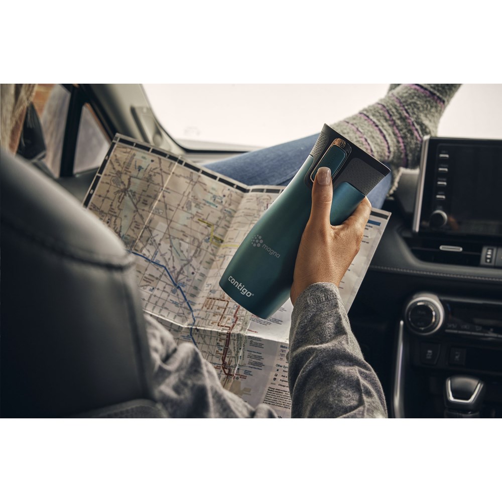 Doppelwandiger vakuumisolierte Thermobecher mit Innenwand aus rostfreiem Edelstahl. Ausgestattet mit AUTOSEAL™-Technologie (100% sicher vor Verschütten oder Auslaufen) und extra Sicherheitsverschluss. Die Trinköffnung schließt sich automatisch nach jedem Schluck. Die THERMALOCK™-Technologie hält Getränke bis zu 12 Stunden kalt oder bis zu 5 Stunden warm. Nur der Deckel ist spühmaschinengeeignet (in der oberen Korb stellen). Spülen Sie den Becher mit der Hand. Fassungsvermögen: 470 ml. LAGERBESTANDSINFORMATION: Bis zu 1.000 Stück innerhalb von 10 Arbeitstagen verfügbar. Ausnahmen vorbehalten. Contigo: der Spezialist bei Qualität, Design und Technologie. Direkt erkennbar an dem schlichten und zeitlosen Design - haltbar und robust. Die innovativen Contigo Wasserflaschen und Thermobecher sind geruchs- und geschmacksneutral und BPA-frei. Mit 2 Jahre Herstellergarantie.