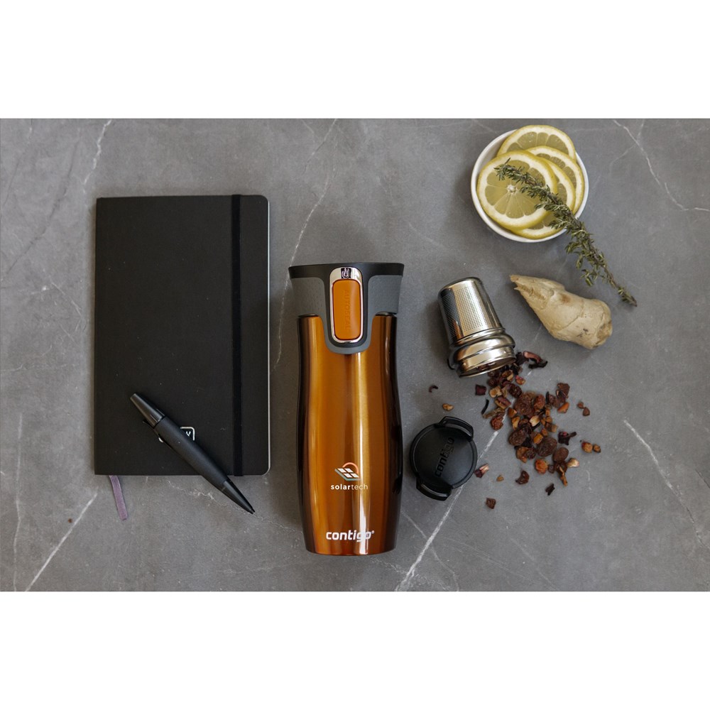 Doppelwandiger vakuumisolierte Thermobecher mit Innenwand aus rostfreiem Edelstahl. Ausgestattet mit AUTOSEAL™-Technologie (100% sicher vor Verschütten oder Auslaufen) und extra Sicherheitsverschluss. Die Trinköffnung schließt sich automatisch nach jedem Schluck. Die THERMALOCK™-Technologie hält Getränke bis zu 12 Stunden kalt oder bis zu 5 Stunden warm. Nur der Deckel ist spühmaschinengeeignet (in der oberen Korb stellen). Spülen Sie den Becher mit der Hand. Fassungsvermögen: 470 ml. LAGERBESTANDSINFORMATION: Bis zu 1.000 Stück innerhalb von 10 Arbeitstagen verfügbar. Ausnahmen vorbehalten. Contigo: der Spezialist bei Qualität, Design und Technologie. Direkt erkennbar an dem schlichten und zeitlosen Design - haltbar und robust. Die innovativen Contigo Wasserflaschen und Thermobecher sind geruchs- und geschmacksneutral und BPA-frei. Mit 2 Jahre Herstellergarantie.