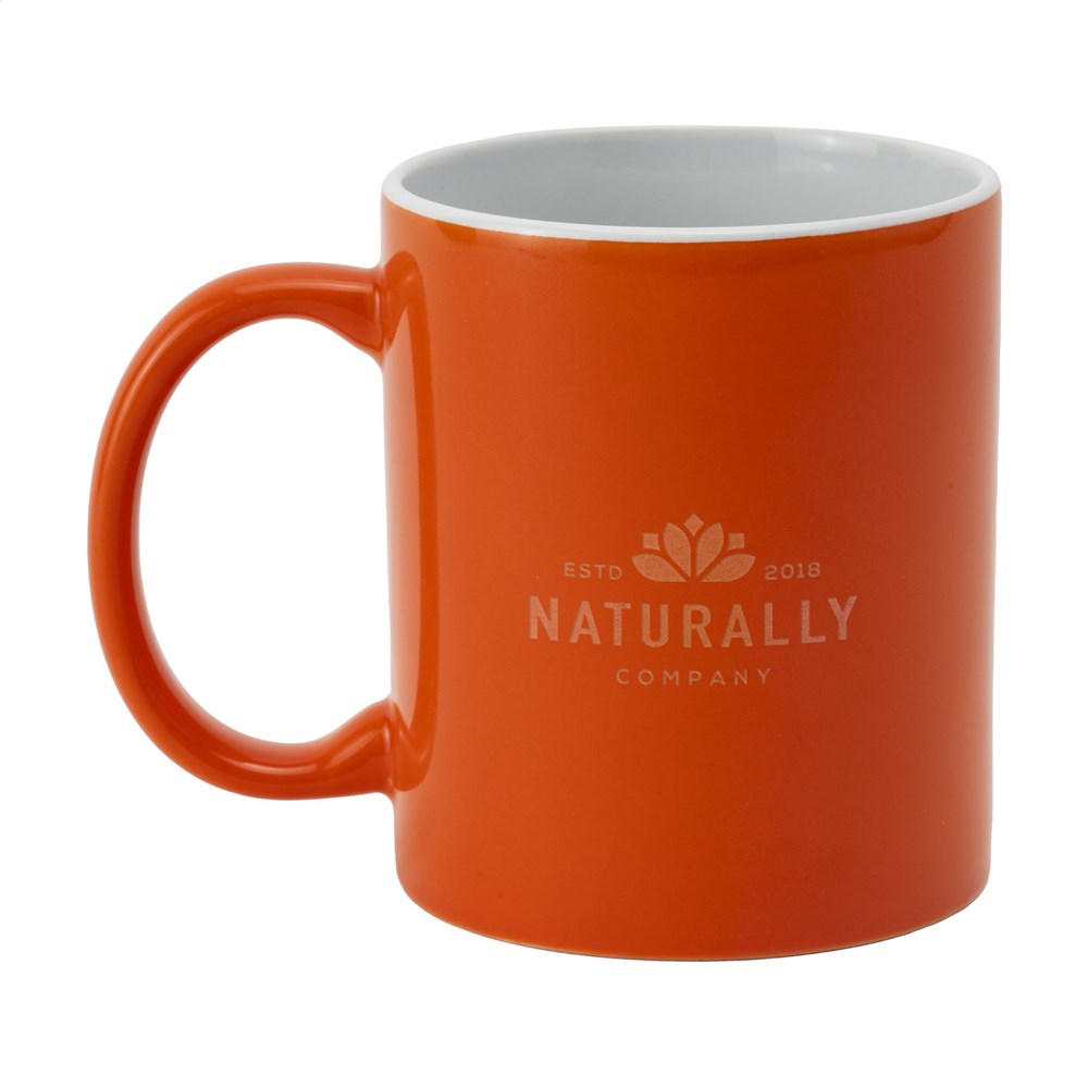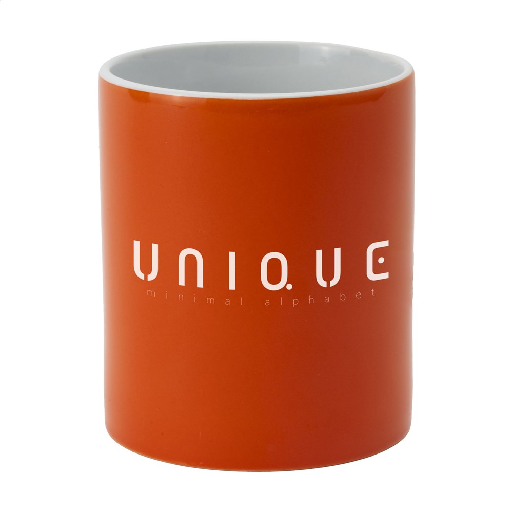 Becher aus hochwertiger Keramik. Komplett in weiß oder mit farbiger Außenseite. Spülmaschinengeeignet. Der Aufdruck ist spülmaschinengeprüft und nach EN 12875-2 zertifiziert. Fassungsvermögen 350 ml.