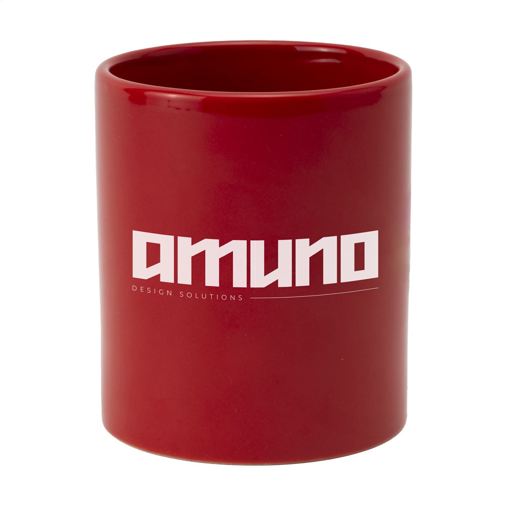 Becher aus hochwertiger Keramik. Komplett in weiß oder mit farbiger Außenseite. Spülmaschinengeeignet. Der Aufdruck ist spülmaschinengeprüft und nach EN 12875-2 zertifiziert. Fassungsvermögen 350 ml.