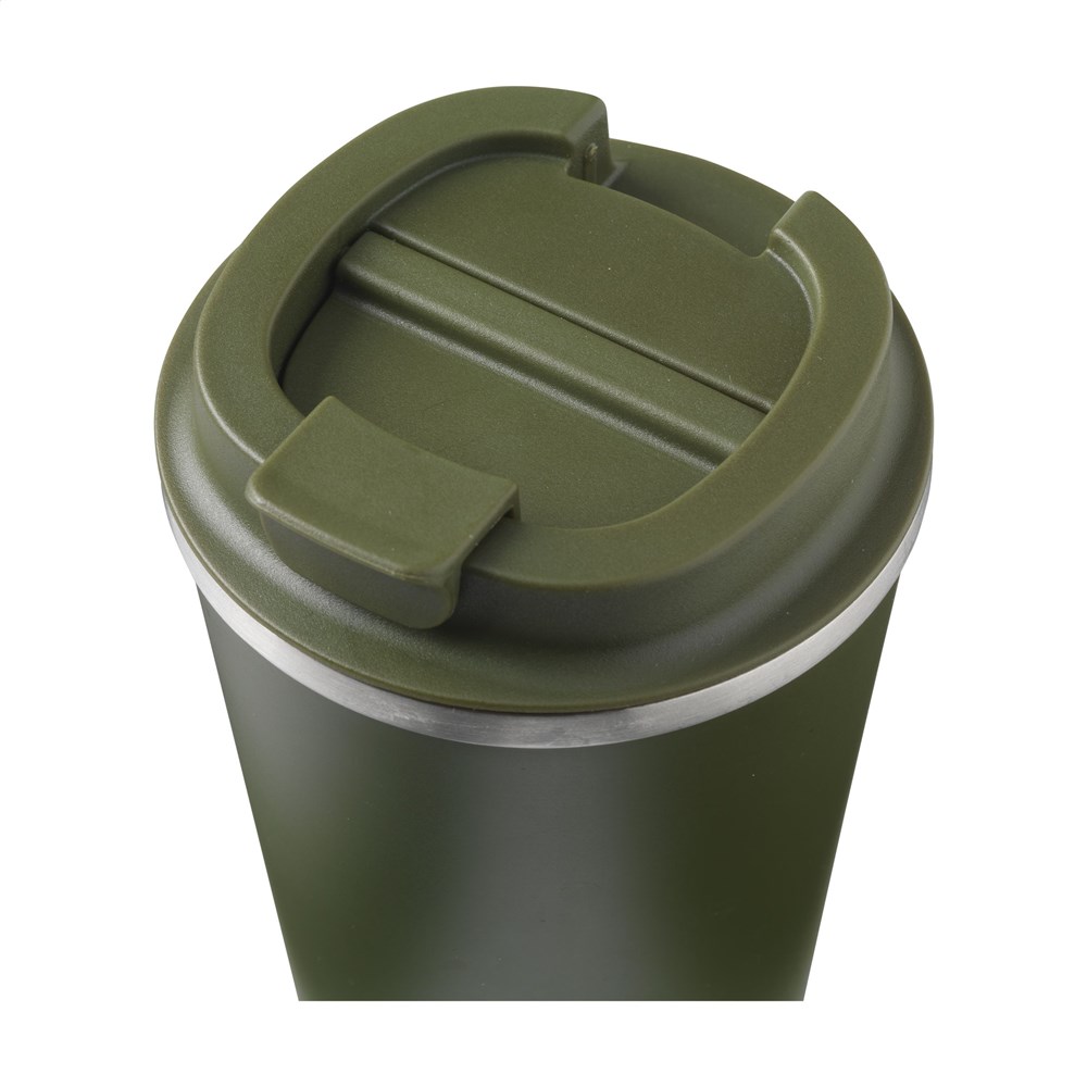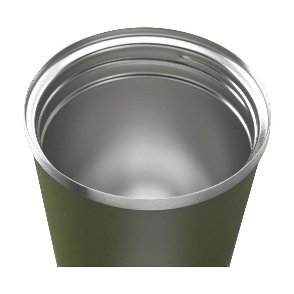 Doppelwandiger, auslaufsicherer Thermobecher aus recyceltem Edelstahl. Abgerundet mit einem... mehr