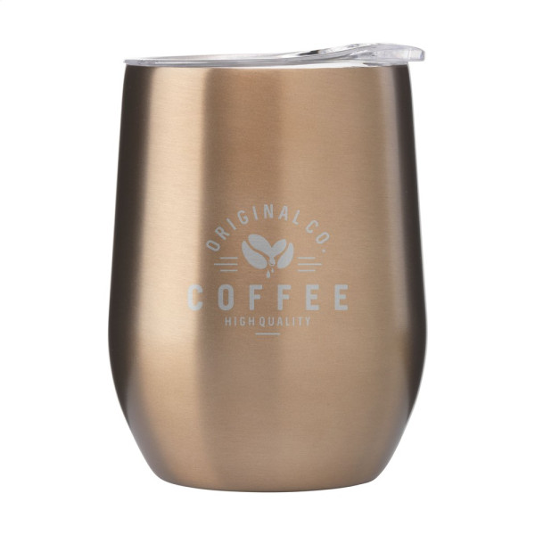 Doppelwandiger Trinkbecher. Die Innen- und Außenwände sind aus recyceltem Edelstahl gefertigt. Dadurch bleiben heiße Getränke länger auf der richtigen Temperatur. Durch sein besonders schönes Design und die attraktive matte Oberfläche fällt der Becher sofort auf. Der transparente Aufsteckdeckel aus Kunststoff ist mit einer verschließbaren Trinköffnung versehen. Nicht spülmaschinengeeignet. Fassungsvermögen 350 ml. RCS-zertifiziert. Gesamtes recyceltes Material: 74%. Verpackt pro Stück.