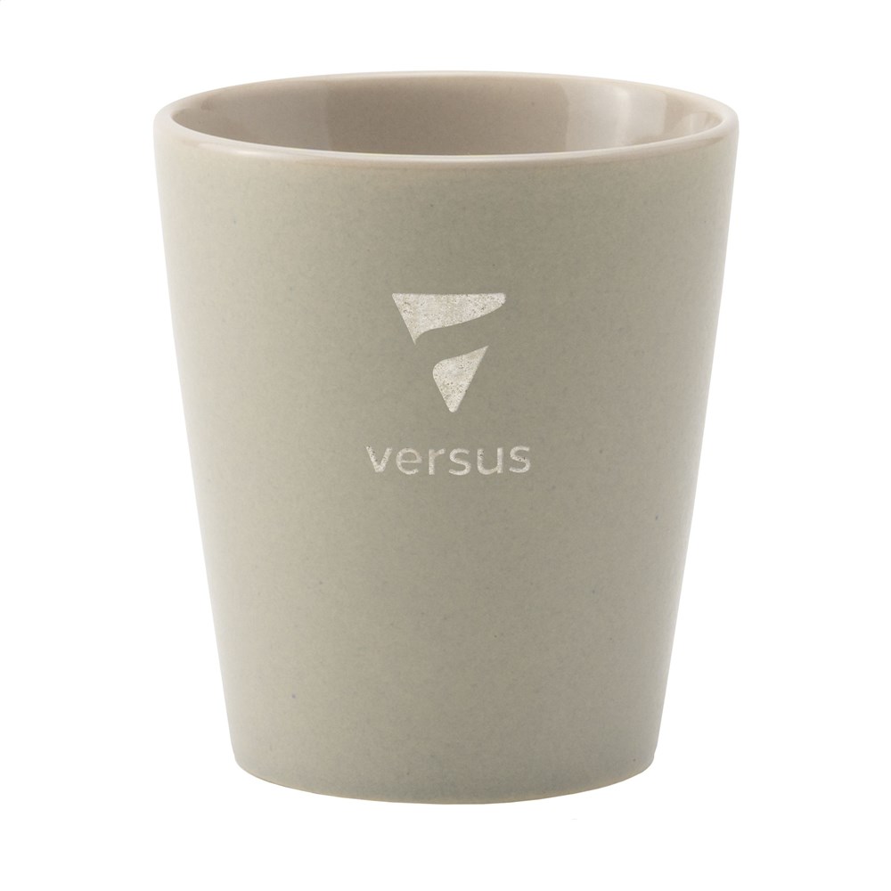 Trendiger Becher ohne Henkel. Aus hochwertiger Keramik. Mit matter, farbiger Außenseite und kontrastierender weißer Hochglanz-Innenseite. Geeignet für alle Kaffeemaschinen. Fassungsvermögen 190 ml. Spülmaschinenfest. Der Druck ist spülmaschinengeprüft und zertifiziert: EN 12875-2.
