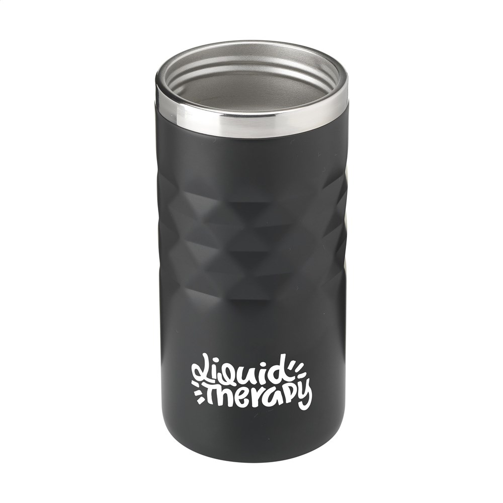 Doppelwandiger Thermobecher aus recyceltem Edelstahl. Mit Schraubdeckel mit Klicköffnung. Mit auffallendem geometrischem 3D-Rautenmuster im Halter. Rutschfeste Unterseite. Nicht spülmaschinengeeignet. RCS-zertifiziert. Recyceltes Material insgesamt: 74%. Fassungsvermögen 280 ml. Edelstahl kann viele Male recycelt werden – die Qualität des Materials bleibt dabei weitgehend erhalten. Durch die Verwendung von recyceltem Edelstahl kommt eine geringere Menge an neuen Rohstoffen zum Einsatz. Das bedeutet weniger Energieverbrauch und weniger Wasserverbrauch. Verpackt pro Stück.