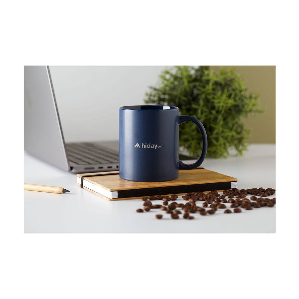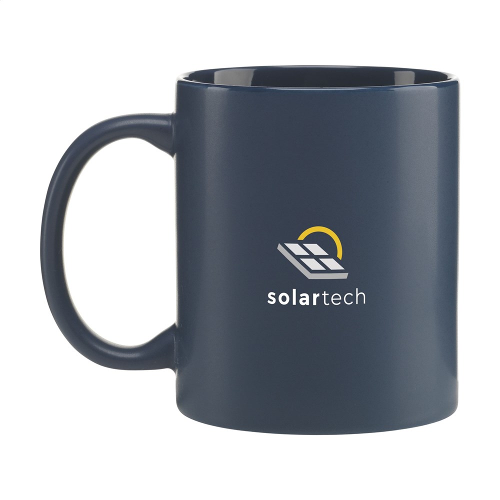 Becher aus hochwertiger Keramik mit mattierter Außenseite und glänzender Innenseite. Spülmaschinengeeignet. Der Aufdruck ist spülmaschinengeprüft und nach EN 12875-2 zertifiziert. Fassungsvermögen 350 ml.