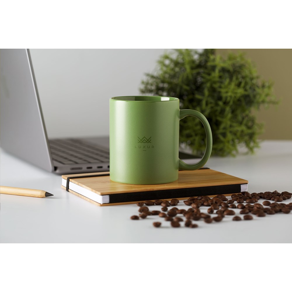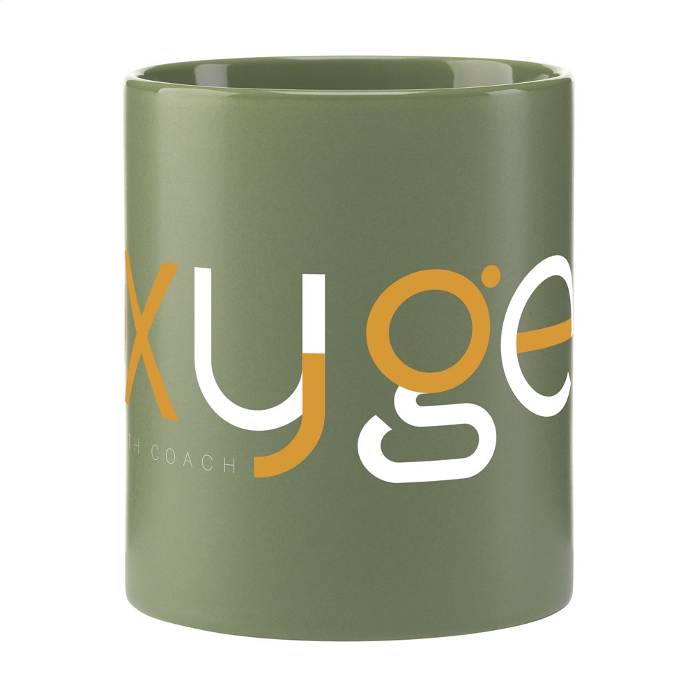 Becher aus hochwertiger Keramik mit mattierter Außenseite und glänzender Innenseite. Spülmaschinengeeignet. Der Aufdruck ist spülmaschinengeprüft und nach EN 12875-2 zertifiziert. Fassungsvermögen 350 ml.
