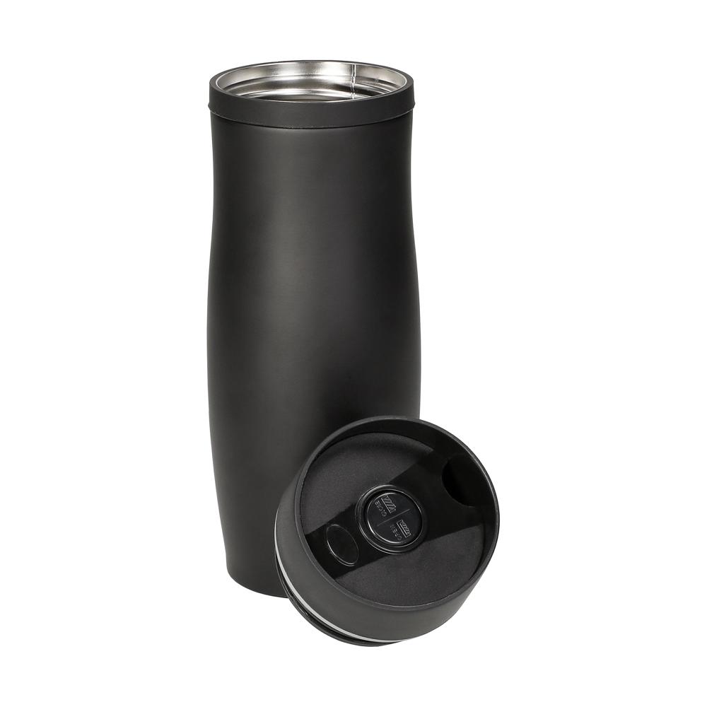 Stundenlanger Geschmack von frisch gebrühtem Kaffee/Tee ohne verbrannte Finger! Der doppelwandige Isolierbecher aus Edelstahl ist der perfekte Begleiter für alle Kaffee- und Teeliebhaber. Die gekonnt, geschwungende Form des Bechers und die Einhandbedienung zum Öffen und Schließen des Bechers machen ihn zu einem echten Must-Have. Dank dem Schraubverschluss mit Silikonring bleib der Inhalt immer sicher an seinem Platz. Füllmenge: 350 ml.