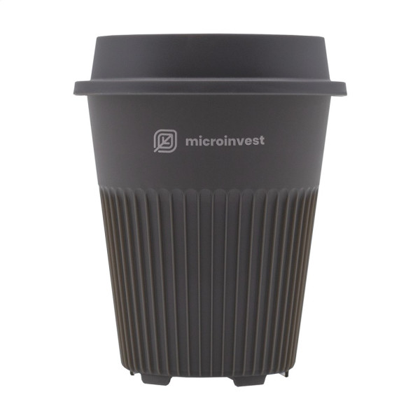 iederverwendbarer Kaffee-to-go-Becher mit Deckel von Circular&Co. Hergestellt aus 100% recyclebarem, robustem PP. Dieser stapelbare Becher sieht nicht nur attraktiv aus, das Design legt auch den Fokus auf Funktionalität. Die Rippen leiten die Wärme des Getränks ab und bieten einen angenehmen Griff. Außerdem hat der Becher einen schnell trocknenden Boden. Der Deckel mit Trinköffnung verhindert das Verschütten von Getränken. Passt in den Standard-Getränkehalter von Autos, also perfekt für unterwegs, aber auch als Becher an der Kaffeemaschine. Die perfekte Alternative zum Einweg-Kaffeebecher. Dieser Becher hält mehr als 500 Waschgänge und ist bis zu 6 Mal recycelbar. Nach nur 2 Benutzungen sind die CO2-Emissionen des Coffee-to-go-Bechers im Vergleich zu einer Einweg-Alternative ausgeglichen. Das bedeutet, dass große Mengen an CO2 nicht in die Atmosphäre gelangen. Durch den Wechsel zu einem wiederverwendbaren Becher landen Milliarden von Bechern weniger auf der Mülldeponie. Nur für die Spülmaschine im oberen Geschirrkorb geeignet. Fassungsvermögen 340 ml.
