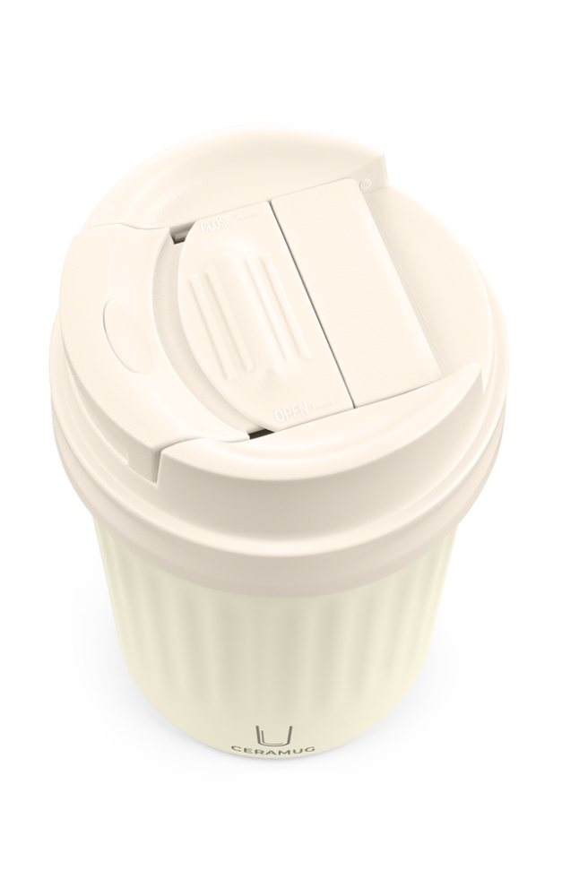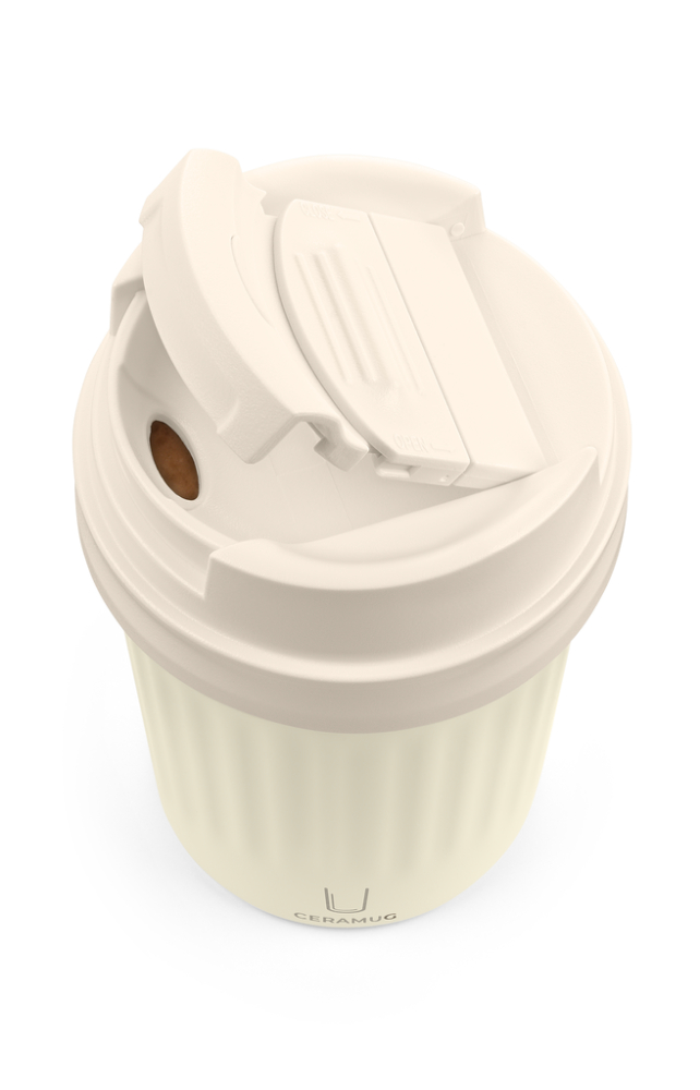Thermobecher für Kaffee und andere Heißgetränke, Doppelwand-Isolierung mit Vakuum und WEILBURGER® Keramik Beschichtung im Inneren, Fassungsvermögen: 300 ml, auslaufsicherer Kunststoffdeckel durch integrierten Schiebeverschluss, geriffelte Optik, 304 Edelstahl, Kunststoff, Silikon, pulverbeschichtet, matt, weiß