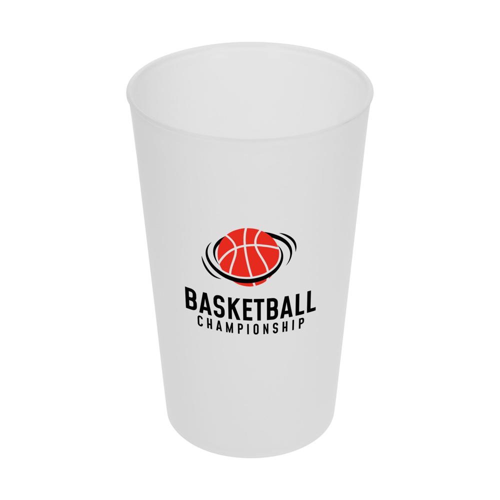 Transparenter Kunststoffbecher mit Füllmarkierung. Füllmenge: 0,4 Liter.