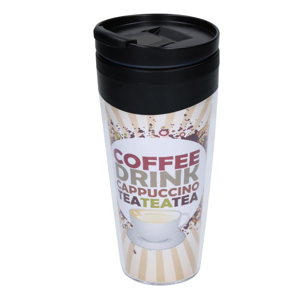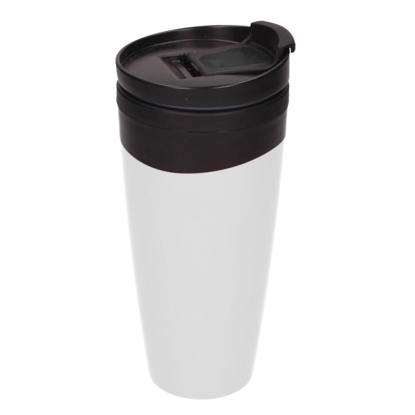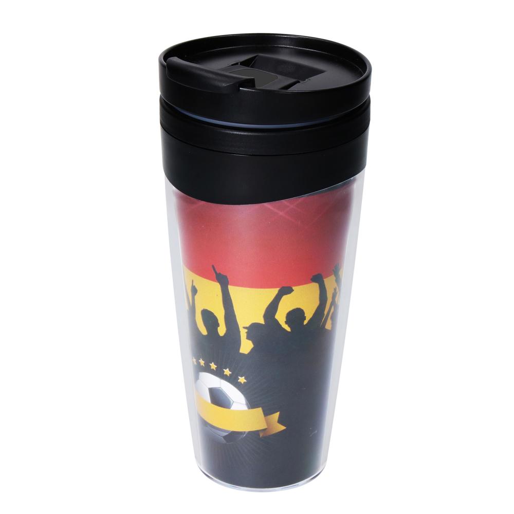 In Deutschland hergestellter Isolierbecher aus Kunststoff mit verschraubbarem Deckel und leicht hoch gezogenem Trinkrand. Die Trinköffnung ist mit einem extra Klappdeckel zu schließen. Gute Isoliereigenschaften aufgrund der Doppelwand. Für heiße und kalte Getränke geeignet. In vielen verschiedenen Farben und auch in transparent mit Einleger erhältlich. Füllmenge: 0,35 Liter.