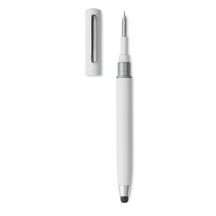 Drehkugelschreiber und Stylus. ABS. Inkl. Reinigungs-Set für TWS-Ohrhörer: Metallspitze, Schwamm und Bürste. Blaue Tinte.