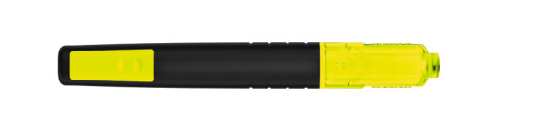 Flüssig-Textmarker in Stiftform mit schwarzem Schaft und transparenter Kappe in Schreibfarbe. mehr