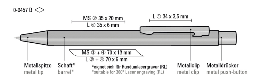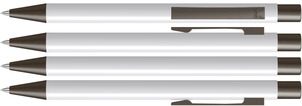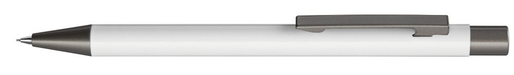 Metall-Druckbleistift (0,7mm) mit glänzendem Gehäuse. Metallclip, Metallspitze und Drücker GUN metallic. Radiergummi im Drücker.