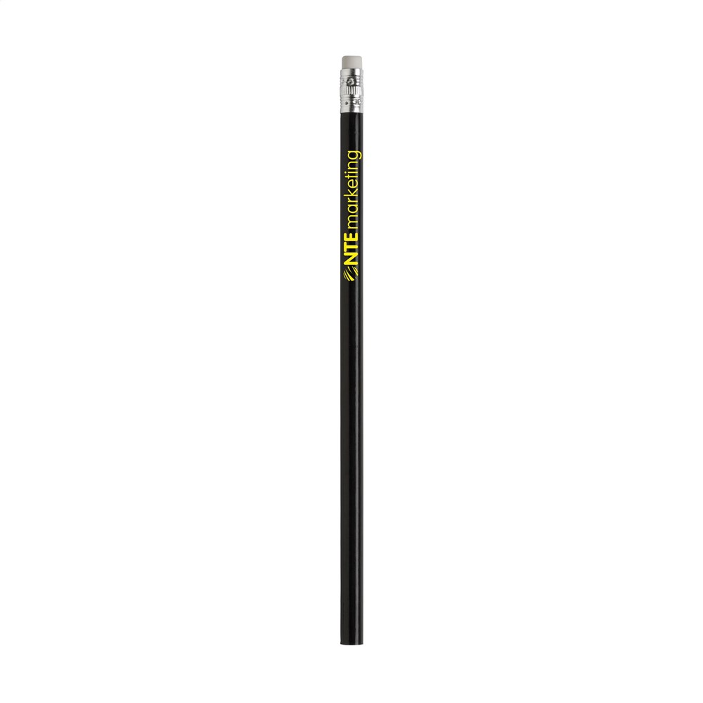 Ungespitzter Holz (HB) Bleistift mit Radiergummi. Lackiert.