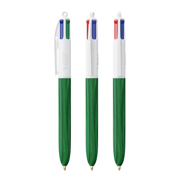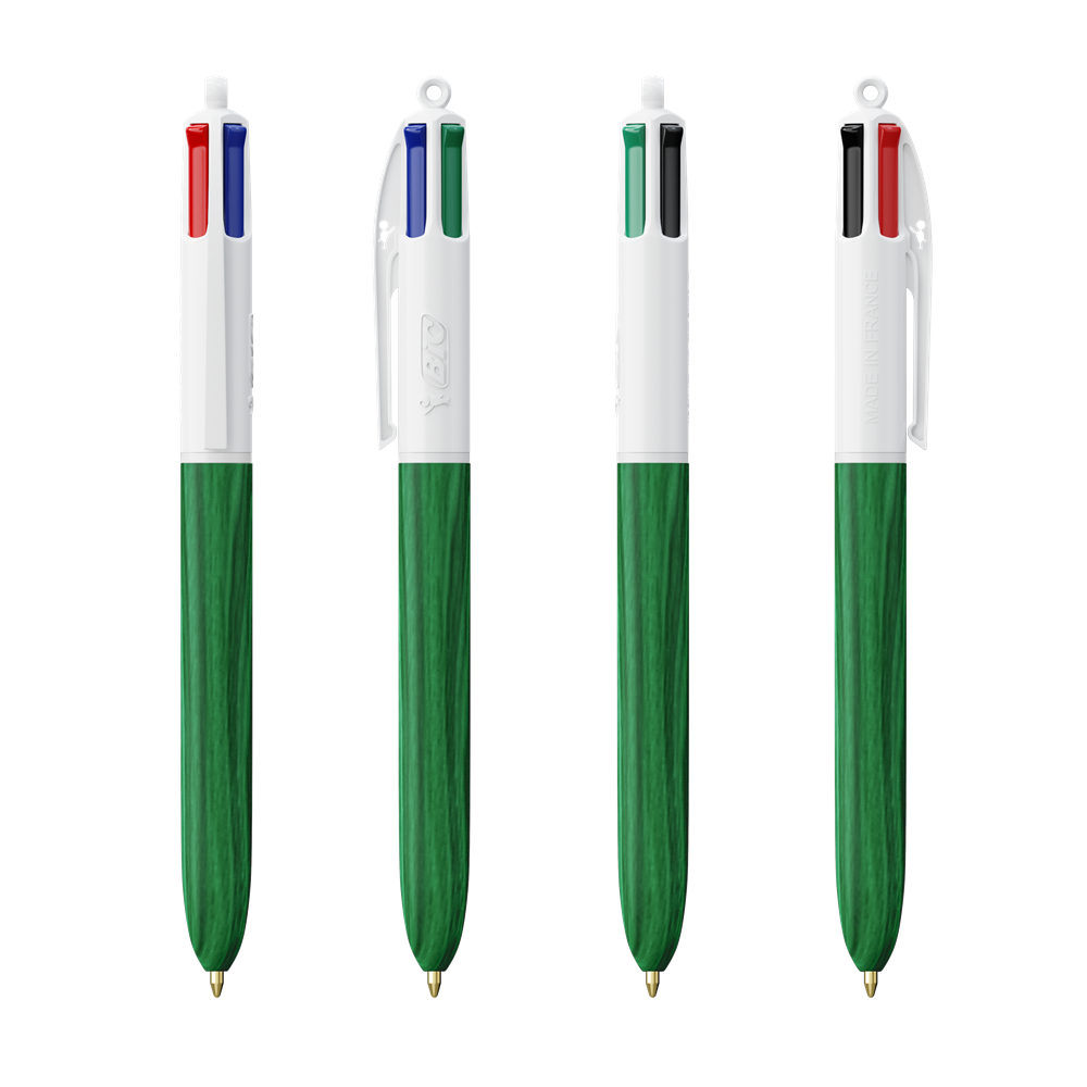 Unser ikonischer BIC® 4 Colours Kugelschreiber mit Holzmaserungseffekt. Lassen Sie sich von der spektakulären Holzoptik beeindrucken! Unser legendärer BIC® 4 Colors® ist jetzt nachhaltiger - mit 13 % weniger Kunststoff im oberen Bereich!