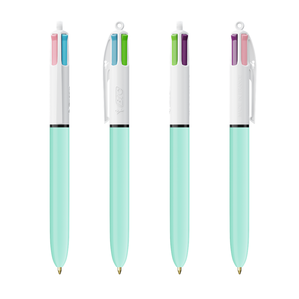 Die trendige Version unser Kugelschreiber-Ikone mit 4 modischen Tintenfarben: hellblau, Dunkelblau, Acidgrün und Pink. Vollfarbdruck in höchster Qualität - mit BritePix Digital. Unser legendärer BIC® 4 Colors® wird nachhaltiger, jetzt mit 13 % weniger Kunststoff im oberen Bereich! Bedenken Sie, dass Sie Ihre Bestellung zwischen Juni 2023 und Juni 2024 möglicherweise mit dem Standardclip oder dem neuen Clip erhalten, der weniger Kunststoff enthält.