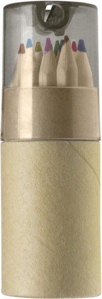 Buntstiftset im Pappköcher, 12-tlg. mit Anspitzer im Kunststoffdeckel.