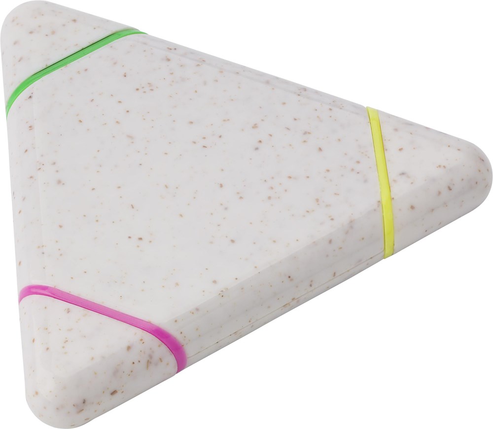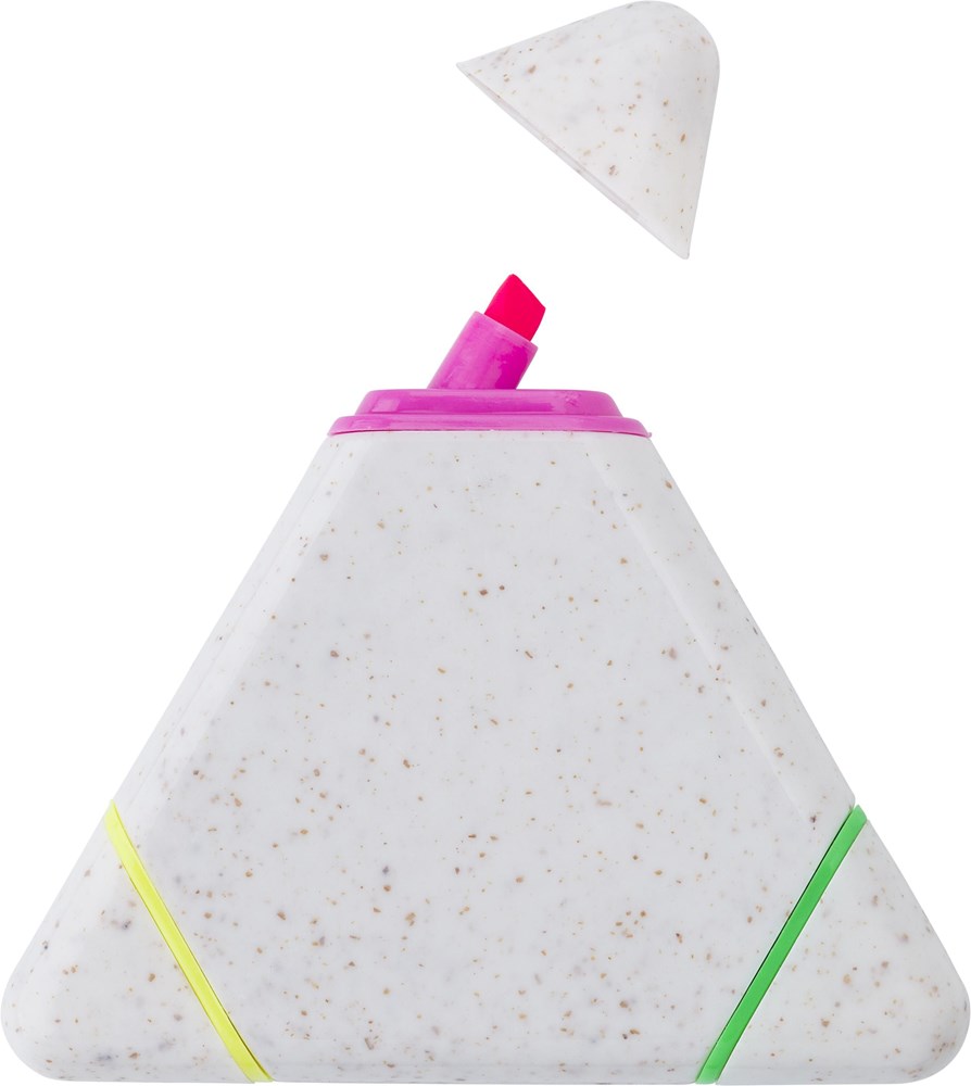 Textmarker aus Weizenstroh mit drei Farben: rosa, grün und gelb. mehr