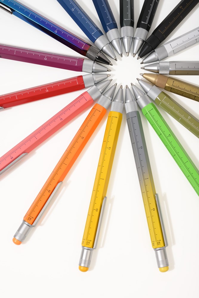 Multitasking-Kugelschreiber, Zentimeter-/Zoll-Lineal, 1:20/1:50 Skala, Wasserwaage,... mehr