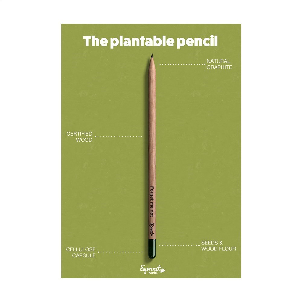 Sproutworld-Bleistift mit einer inspirierenden Botschaft für die Natur. Dieser ungespitzte Bleistift ist aus Holz gefertigt. Am Ende des Bleistifts ist eine Kapsel (aus Zellulose) angebracht, die einige Samen enthält. Wenn der Stift zu klein geworden ist, um ihn zu verwenden, pflanzen Sie den Stift mit der Kapsel in die Erde. Nach etwa 2–3 Wochen keimen die Samen und entwickeln sich zu wunderschönen Blumen, duftenden Kräutern oder Gemüse. Wählen Sie aus verschiedenen Typen. Der Name der Pflanze ist standardmäßig in den Bleistift eingraviert. Der Bleistift enthält kein Blei und ist daher völlig sicher. Made in Europe. Zusatzartikel W387: Bunte Karte aus Karton zum Einlegen des Bleistifts. Die Karte enthält englischsprachige Informationen über das Produkt und verleiht dem Produkt einen exklusiven Aufmerksamkeitswert. Eine Life Cycle Assessment (LCA) dieses Produkts ist bei den Downloads verfügbar.
