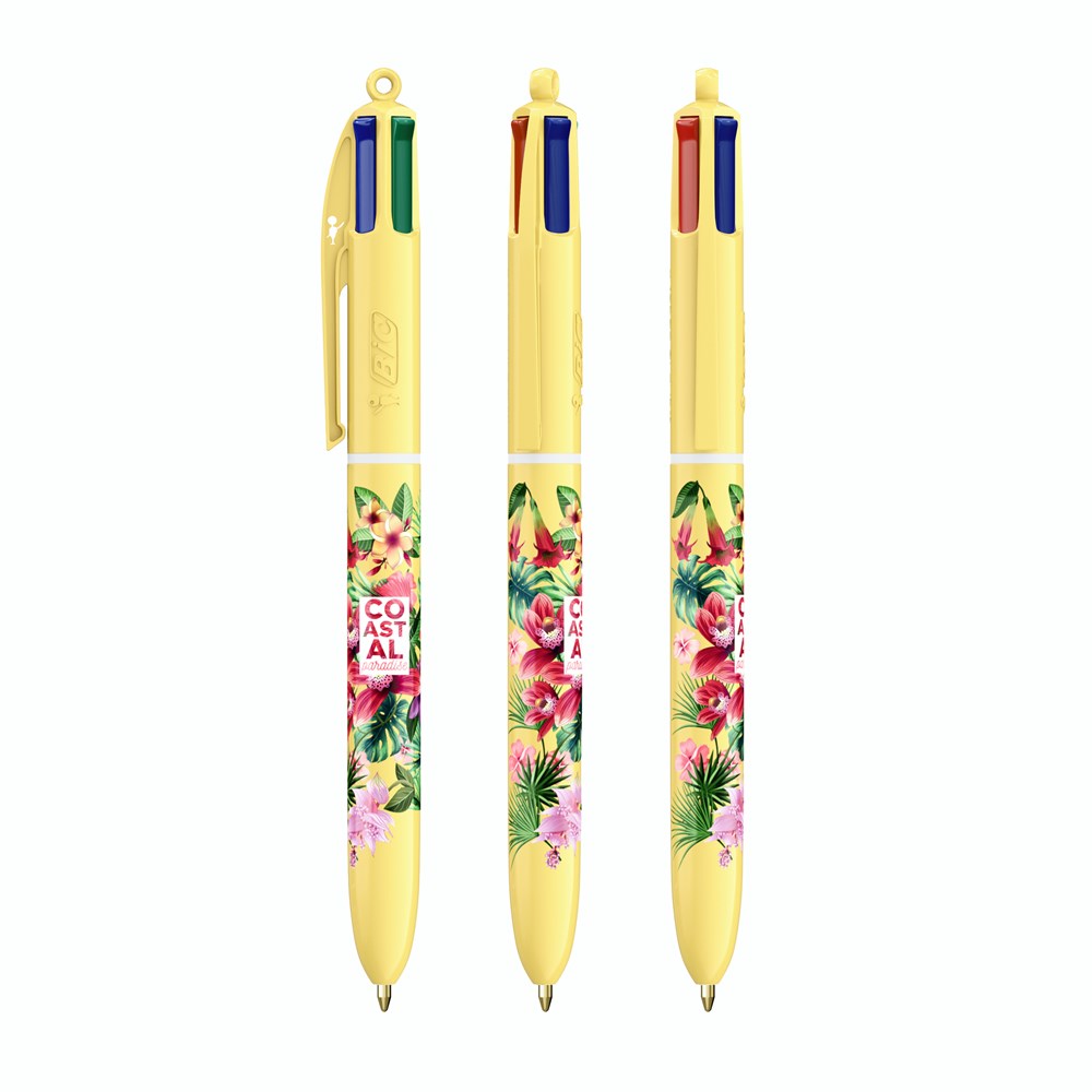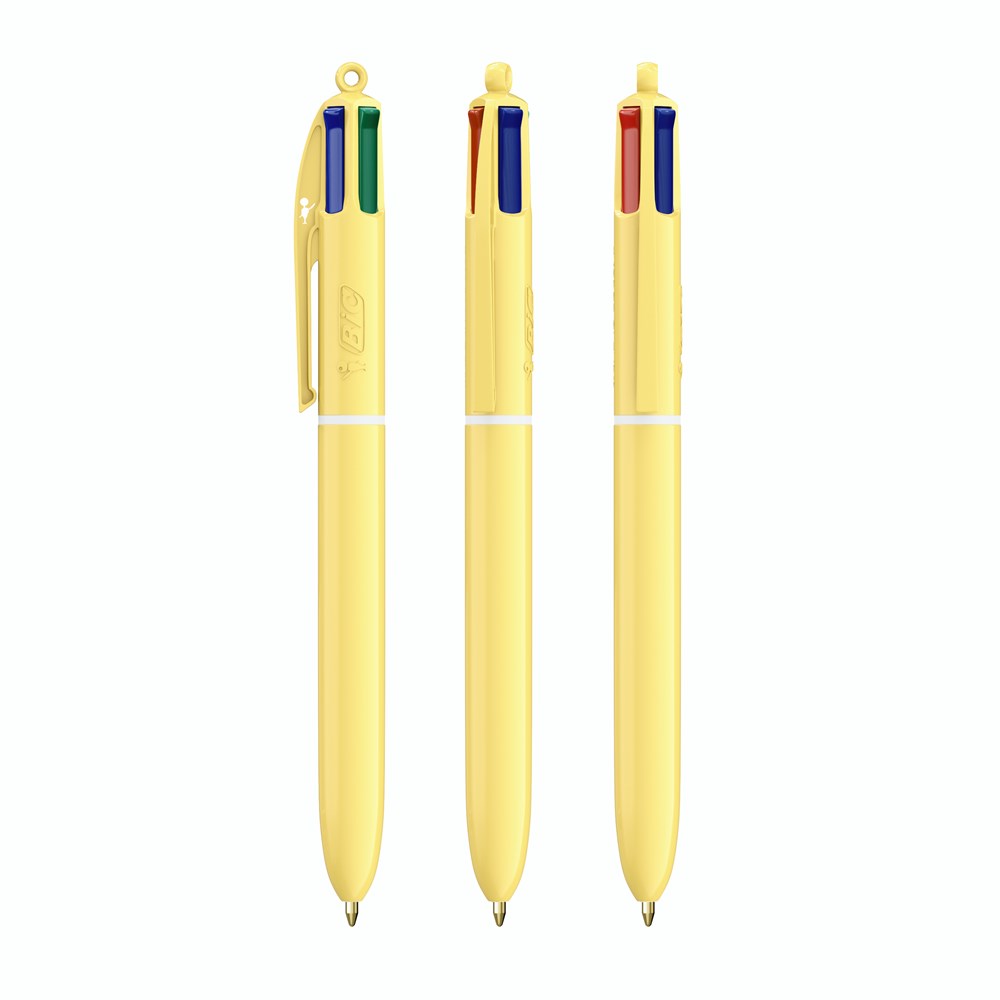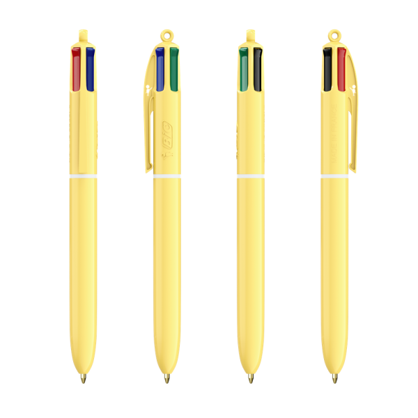 Entdecken Sie unseren neuen BIC® 4 Colours® Pastel! Seien Sie kreativ mit den neuen trendigen Pastellfarben - für einzigartige Designs mit einer verträumten Bildsprache! Unsere BIC® 4 Colours® Kugelschreiber haben eine durchschnittliche Schreiblänge von 8.000 m (SGS-Tests - durchschnittliche Schreiblänge für blaue, schwarze, rote und grüne Tinte). Unser legendärer BIC® 4 Colours® wird immer nachhaltiger, jetzt mit 13% weniger Plastik im Oberteil!