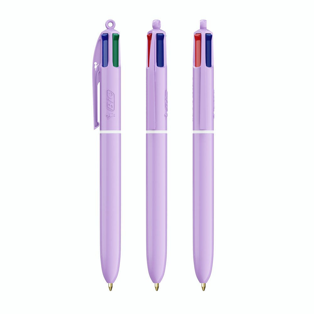 Entdecken Sie unseren neuen BIC® 4 Colours® Pastel! Seien Sie kreativ mit den neuen trendigen Pastellfarben - für einzigartige Designs mit einer verträumten Bildsprache! Unsere BIC® 4 Colours® Kugelschreiber haben eine durchschnittliche Schreiblänge von 8.000 m (SGS-Tests - durchschnittliche Schreiblänge für blaue, schwarze, rote und grüne Tinte). Unser legendärer BIC® 4 Colours® wird immer nachhaltiger, jetzt mit 13% weniger Plastik im Oberteil!